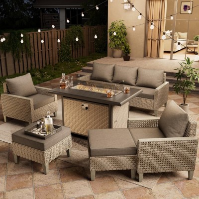 7 Pieces Patio Furniture Set with Fire Pit Table